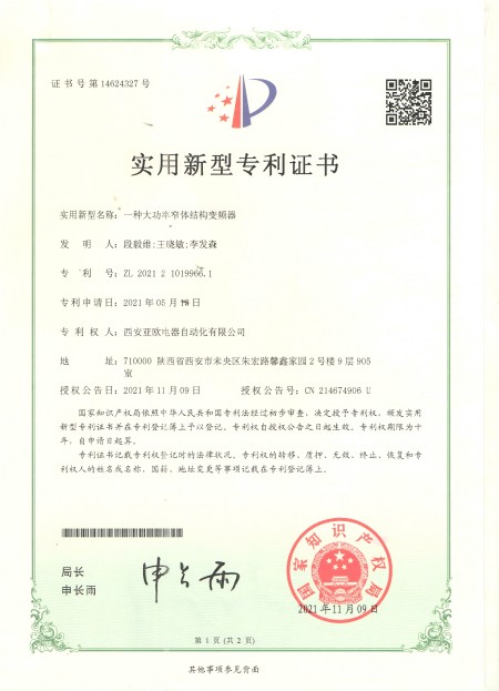 - 關(guān)于我們 - 資質(zhì)榮譽(yù) - 一種大功率窄體結(jié)構(gòu)變頻器專利